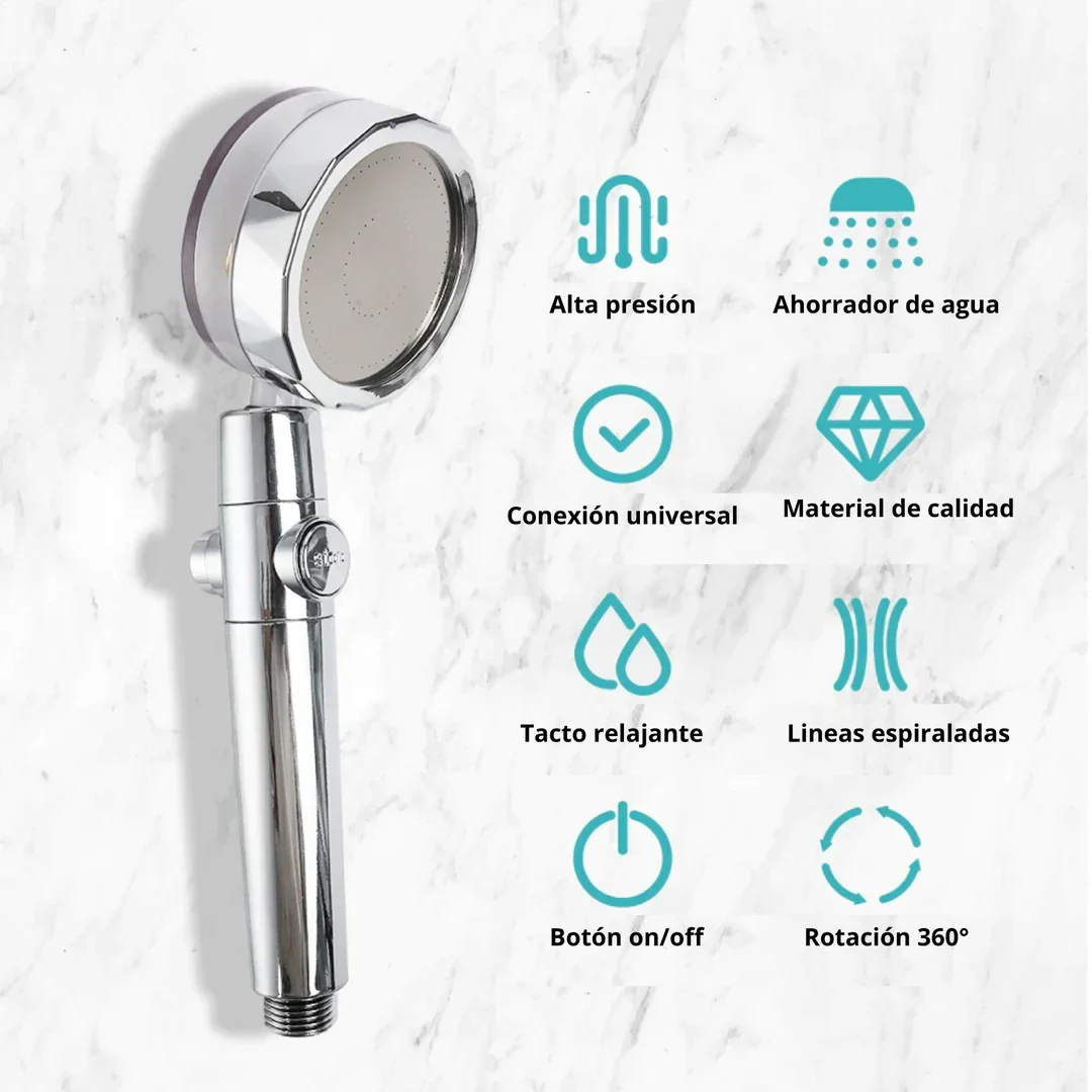 Es un cabezal de regadera con tecnología de presión inteligente y diseño espiral, que transforma una ducha débil en un flujo potente y uniforme.🚿